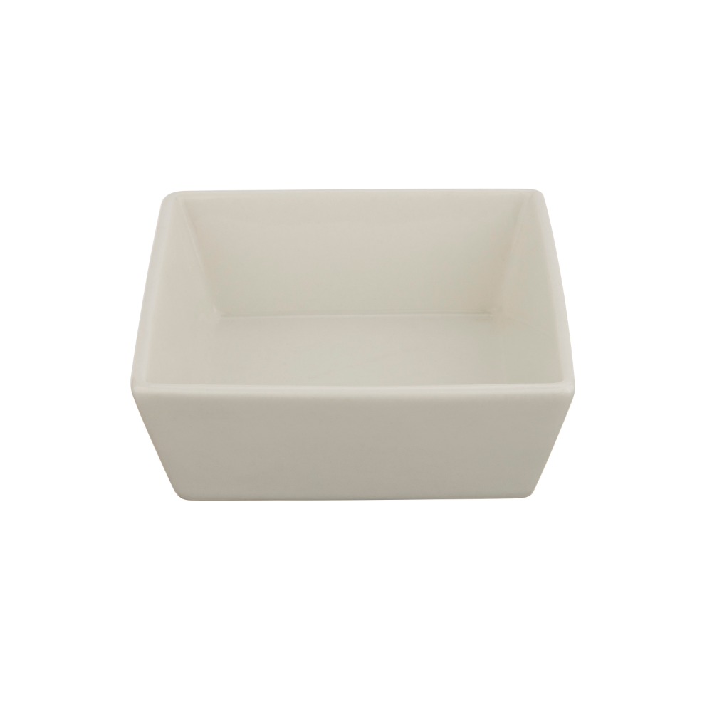 Timeless and versatile small square ceramic platter featuring a smooth high-gloss white finish from the Juliet collection. This 12 x 12 x 4.5 cm platter offers a generous depth—perfect for serving individual portions of pasta, rice bowls, salads, desserts, or side dishes with saucy toppings. Its clean geometric silhouette and pristine white surface complement any table setting, from casual meals to special occasions. Durable, chip-resistant, dishwasher-safe, and microwave-safe. Pure simplicity with practical depth.